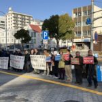 続いて中谷雄二弁護士は、能動的サイバー防御法案は民主主義とプライバシーを破壊し、戦争に巻き込まれる危険があり許してはならないと訴えました。「屋台の珈琲屋」さんがパンチのきいた歌を三曲披露した後、不戦へのネットワークの八木さんは、日本の戦争準備を批判し、民族教育の未来をともに考えるネットワークあいち(トトリの会)の原科さんは、朝鮮高校が無償化から外されている不条理さを切々と語りました。種子法廃止・違憲訴訟の会代表の池住さんは、全ての人が等しく食べ物を得られる状態こそが「平和」だと語り、みんなで声を合わせましょうと呼びかけました。
