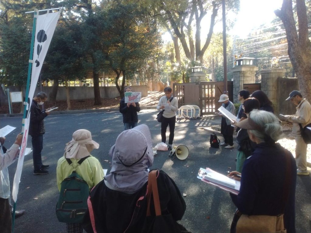 11月15日(土)、豊橋市平和委員会は「平和フィールドワーク 旧陸軍第15師団戦跡めぐり」を開催しました。昨年に続き、2回目のフィールドワークです。参加者は19名でした。
