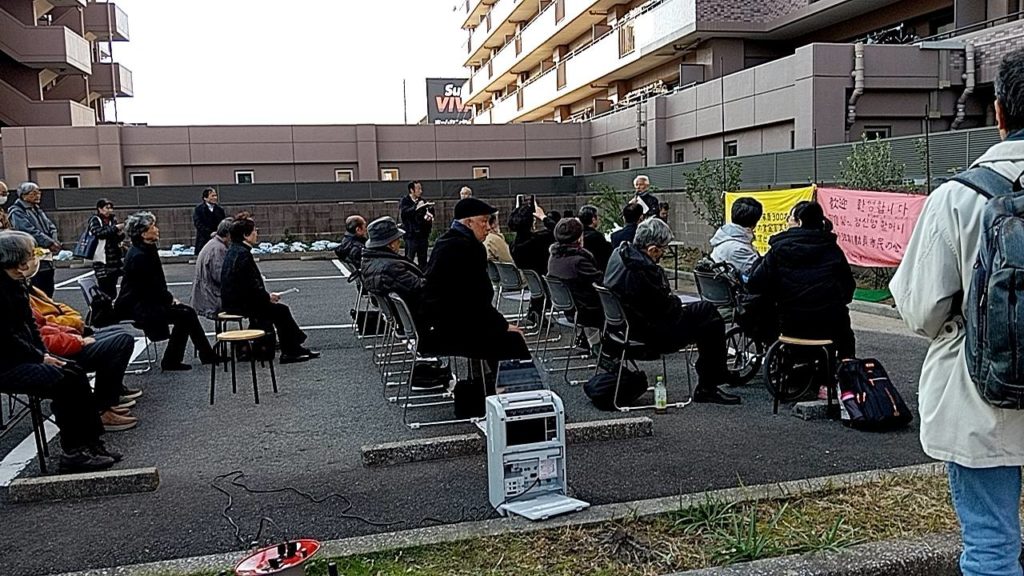 地震から81周年にあたる今年の「東南海地震犠牲者を追悼する集い」は、2025年12月7日13時から、追悼記念碑のある名南ふれあい病院で開催されました。この集いには「勤労挺身隊」の数少ない生存者の一人である鄭信滎(チョン・シニョン)ハルモニ(95歳)が「日帝強制動員市民の会」李國彦(イ・クゴン)理事長とともに参加されました。 集いは李國彦理事長の力強い挨拶からはじまりました。続いて、現地から医療法人名南会、名古屋三菱・朝鮮女子勤労挺身隊訴訟を支援する会、愛知県平和委員会から連帯の挨拶がありました。更に政党からは、近藤昭一立憲民主党国会議員(メッセージ)、本村伸子日本共産党国会議員、平山良平社民党愛知県代表が挨拶をしました。黙祷後には、高橋信さんから閉会の言葉がありました。