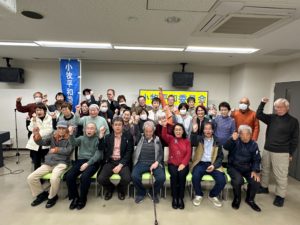 集会の最後には「団結ガンバロー」で決意を固めました。