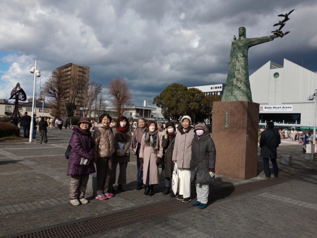 豊川市の二十歳の集い(成人式)が1月11日に開催され、平和委員会、新婦人豊川支部10人で宣伝行動を行いました。